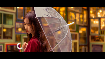 暝晴 在灯光下打着伞
